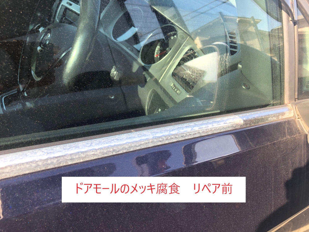 モールのメッキ腐食は、研磨してからガラスコーティングを施しました